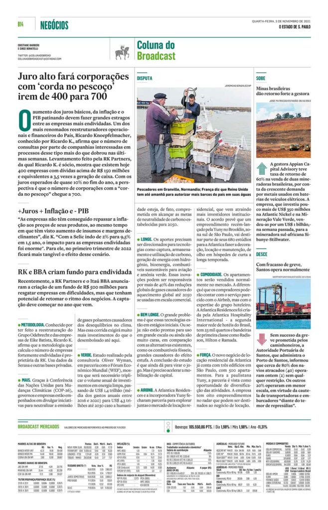 Juro alto fará corporações com ‘corda no pescoço’ irem de 400 para 700 O aumento dos juros básicos, da inflação e o PIB patinando devem fazer grandes estragos entre as empresas mais endividadas. Um dos mais renomados reestruturadores operacionais e financeiros do País, Ricardo Knoepfelmacher, conhecido por Ricardo K. , afirma que o número de […]