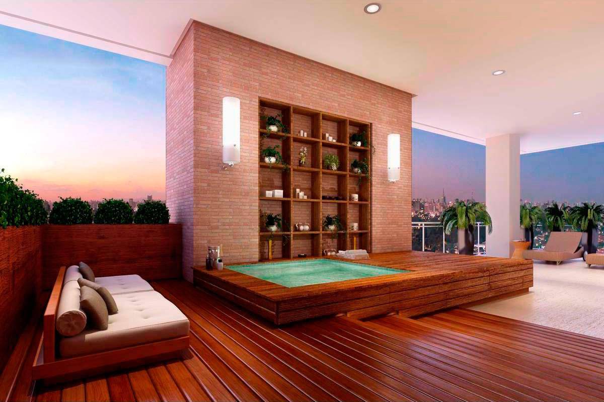 Lazer: Salão de festas, Adega, Spa com hidro, sala de descanso e sala de massagem, Fitness, Quadra de Squash, Piscina com raia de 25 metros e Sauna.
